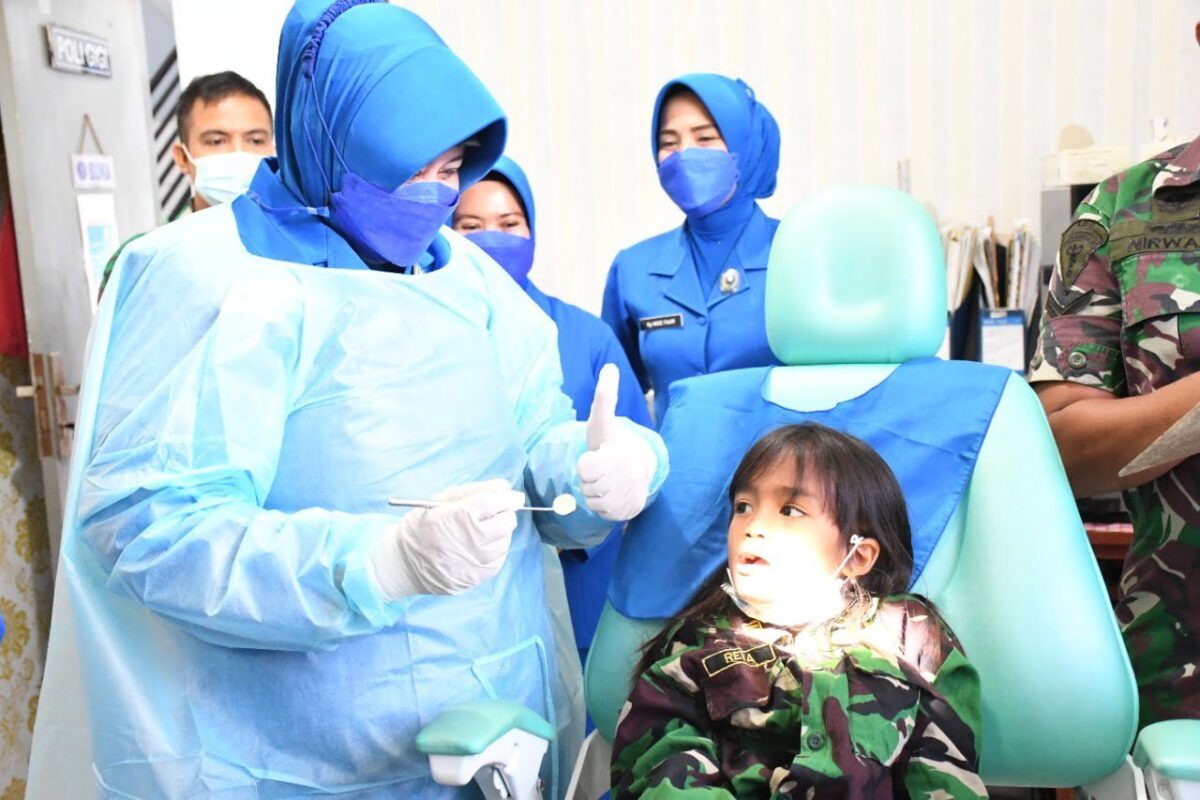 PADANG, METRO–Ketua Koordinator Cabang Korcab II Daerah Jalasenastri Armada DJA I Ny Amelia Endra Su­listiyono, melakukan pemeriksaan gigi langsung kepada murid TK Hang Tuah Lantamal II Kamis (10/2) di Dinas Kesehatan Diskes Lantamal II jalan Sutan Syahrir Kota Padang.
