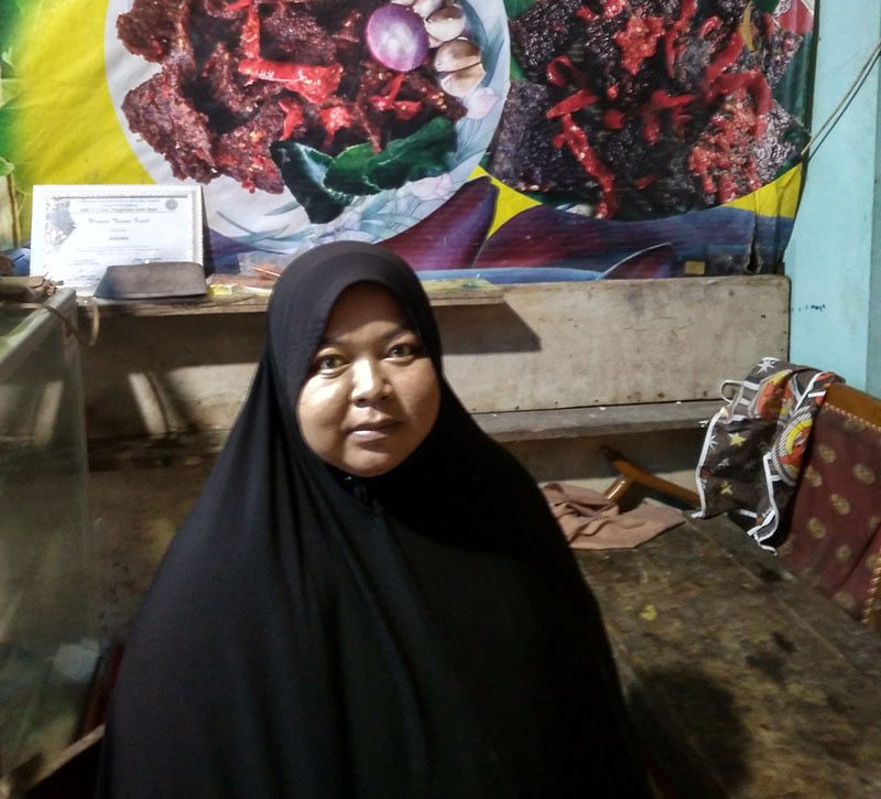 “Awal mulonyo, kami lah mengolah pisang juo, maka kami bueklah Dendeng Jantuang Pisang, urang tahunyo dendeng Dagiang, dendeng dagiang maha, dan urang yang dak makan dagiang taragak makan dendeng apolah dendeng sayua yang ado, kami cubolah mambuek dendeng Jantuang Pisang, dan setelah kami cubo hanyo ado beberapa Jantuang Pisang yang bisa dibuek Dendeng,” ucapnya ramah kepada wartawan.
