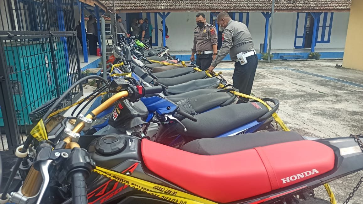 PAHLAWAN, METRO–Puluhan Kendaraan Bermotor Roda Dua (Ranmor) R2 berbagai merek masih menumpuk dan belum dijemput oleh pemiliknya di Unit Satuan Lalulintas (Satlantas) Polres Payakumbuh sejak beberapa hari terakhir. Barang Bukti (BB) tersebut merupakan hasil Razia Balap Liar yang digelar.