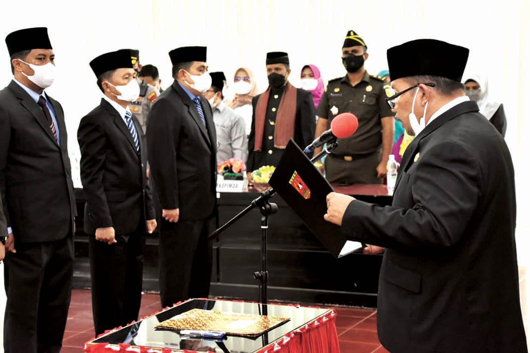 PELANTIKAN PEJABAT— Bupati Agam Andri Warman melantik delapan pejabat yang dirotasi di lingkungan Pemkab Agam.