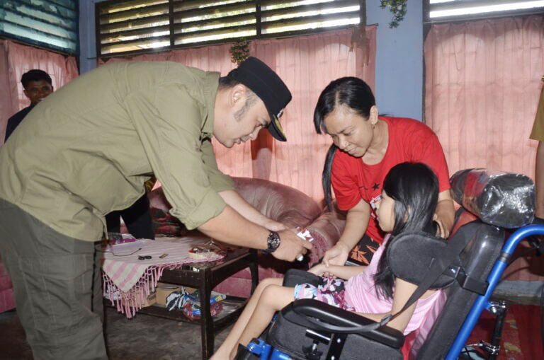 SIJUNJUNG, METRO–Penyandang disabilitas di Sijunjung menerima bantuan kursi roda dan tongkat adaptif dari Pemkab Sijunjung. Bantuan itu diserahkan langsung Bupati Benny Dwifa dengan menyambangi penerima dari rumah ke rumah. Bupati Benny memastikan bahwa bantuan untuk penyandang disabilitas harus tepat sasaran, sekaligus memberikan motivasi kepada pihak keluarga. Bupati yang didampingi Kepala Dinas Sosial, Pemberdayaan Perempuan dan Perlindungan Anak, Yofritas mengantarkan bantuan langsung ke rumah penerima.