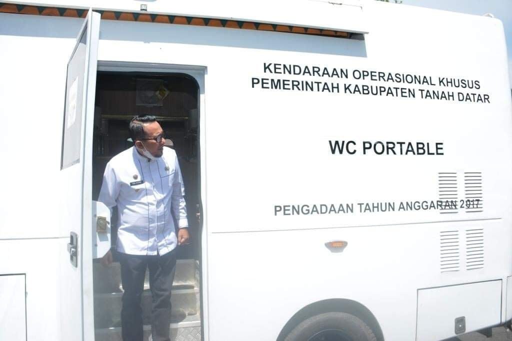 TANAHDATAR, METRO–Sehari selepas mengantarkan langsung bantuan untuk korban Gempa Bumi di Pasaman dan Pasaman Barat dengan total bantuan Rp120 juta beserta bantuan lain berupa barang, Bupati Tanah Datar Eka Putra kembali mengirimkan 1 unit bus WC Portable, Jumat (4/3) di Indo Jolito Batusangkar.
