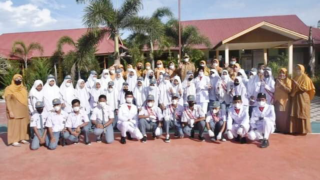 FOTO BERSAMA— Wako Genius Umar berfoto bersama dengan guru dan siswa siswi usai upacara.