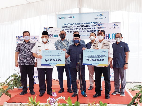BUKITTINGGI, METRO–Taspen Group  (Taspen, Taspen Life dan Bank Mantap), kembali menyalurkan bantuan logistik untuk korban gempa Pasaman dan Pasaman Barat. Bantuan tersebut diserahkan langsung dan dilepas secara resmi di Kantor Taspen Bukittinggi, Rabu (9/3). Direktur Utama PT Taspen (persero), ANS Kosasih menjelaskan, Taspen merupakan mitra pemerintah dan siap membantu pemerintah. Sesuai slogan baru BUMN AKH­LAK dan BUMN untuk Indonesia, PT Taspen (Persero) akan selalu hadir di tengah masyarakat.