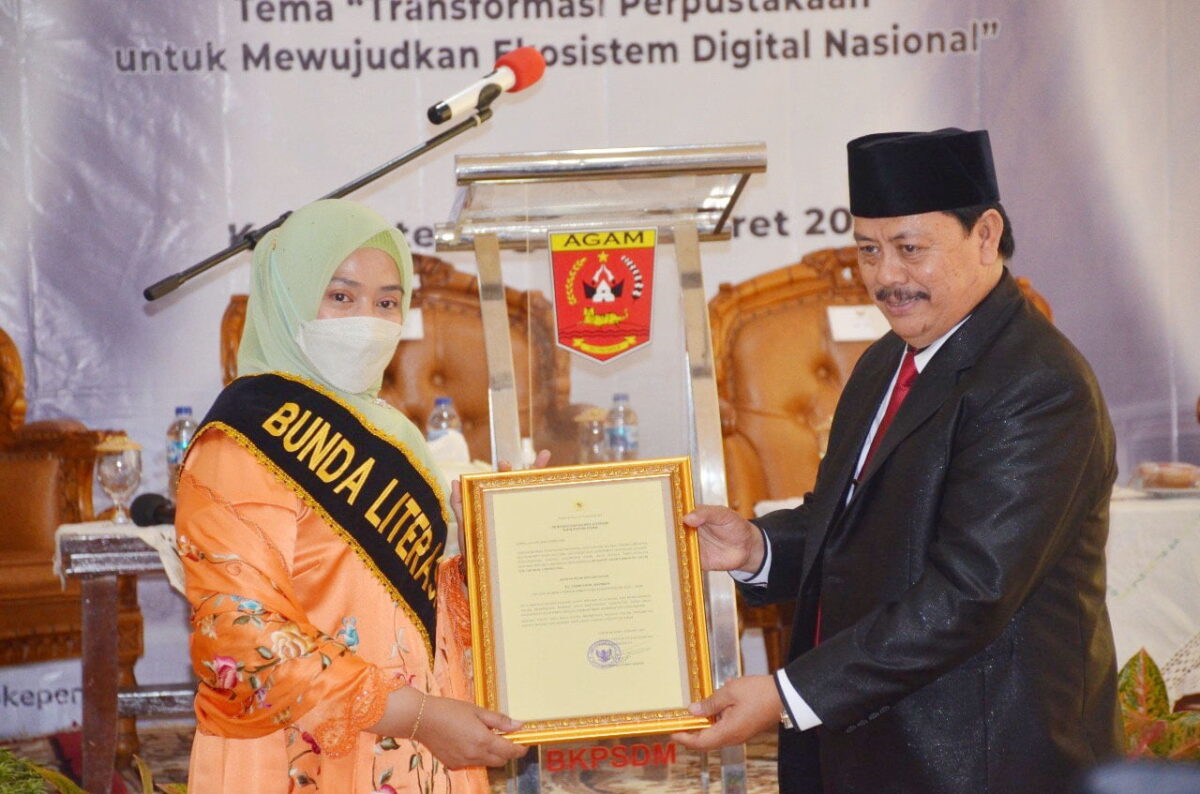 Kepala Perpustakaan Nasional RI (Perpusnas RI) mengukuhkan Ny Andri Warman sebagai Bunda Literasi Kabupaten Agam periode 2022-2024, Selasa (8/3). Sebagai Bunda Literasi, Ny Yenni Andri Warman akan mengemban tugas mensosialisasikan, promosi dan mengkampanyekan pemberdayaan gemar membaca dan literasi di tengah masyarakat.