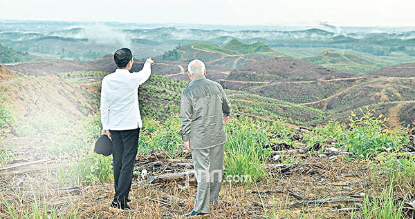 TINJAU— Presiden RI Joko Widodo saat meninjau lokasi untuk ibu kota negara yang kini sedang dilacak KPK adanya dugaan bagi bagi lahan.