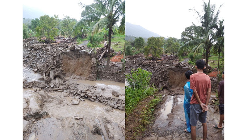 “Jembatan yang satu memiliki panjang sekitar 20 meter dengan lebar empat meter dan satu jembatan satu lagi memiliki panjang 15 meter dengan lebar 2,5 meter. Hanyutnya dua jembatan ini membuat akses masyarakat juga ikut terputus ke areal perkebunan masyarakat,” katanya.