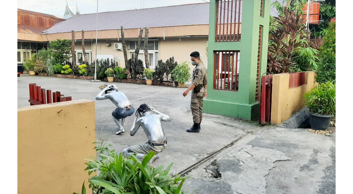 Di Mako Satpol PP Padang, kedua remaja tersebut dibina sesuai aturan, mereka diajak olahraga maraton sekeliling Mako dan push up, sebelum pulang merekapun disuruh membuat surat pernyataan untuk tidak akan mengulangi perbuatannya kembali. (ade)