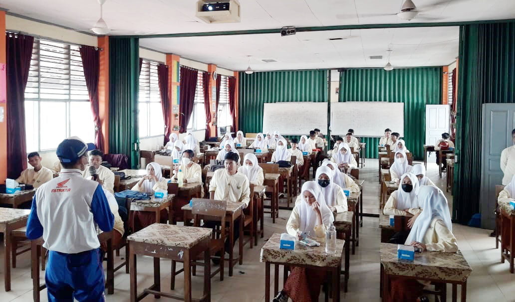 Sebanyak lebih kurang 70 orang siswa antusias mengikuti pelatihan kese­la­matan berkendara di kelas dan praktek langsung yang disampaikan oleh Dio Suryanto selaku Safety Riding Instructor PT.Hayati Pratama Mandiri.