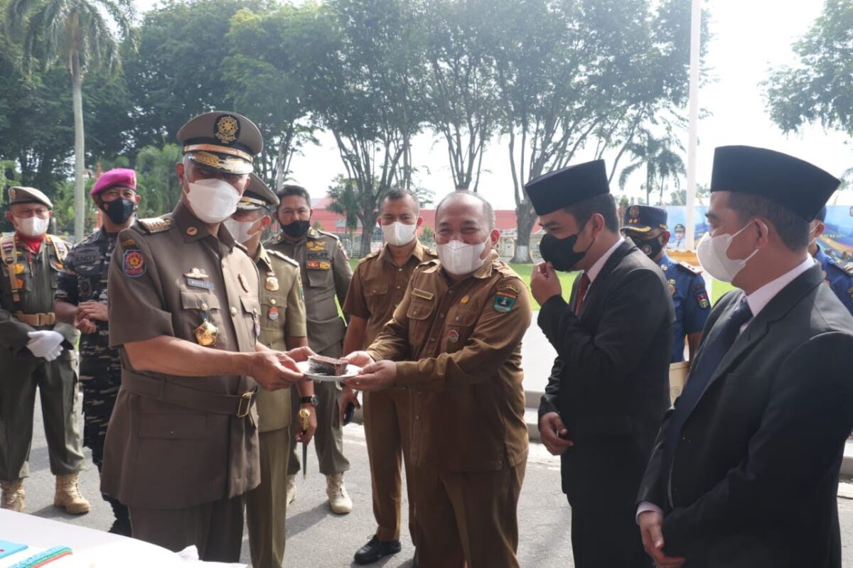 PADANG, METRO–Gubernur Sumatera Barat, Buya Mahyeldi, memimpin Upacara Peringatan hari ulang tahun Satpol PP ke-72, Pemadam Kebakaran ke-103 dan Perlindungan Masyarakat ke-60 Tingkat Provinsi Sumatera Barat, di Lapangan Kantor Gubernur Sumbar, Jl. Sudirman, Padang, Senin (21/3).
