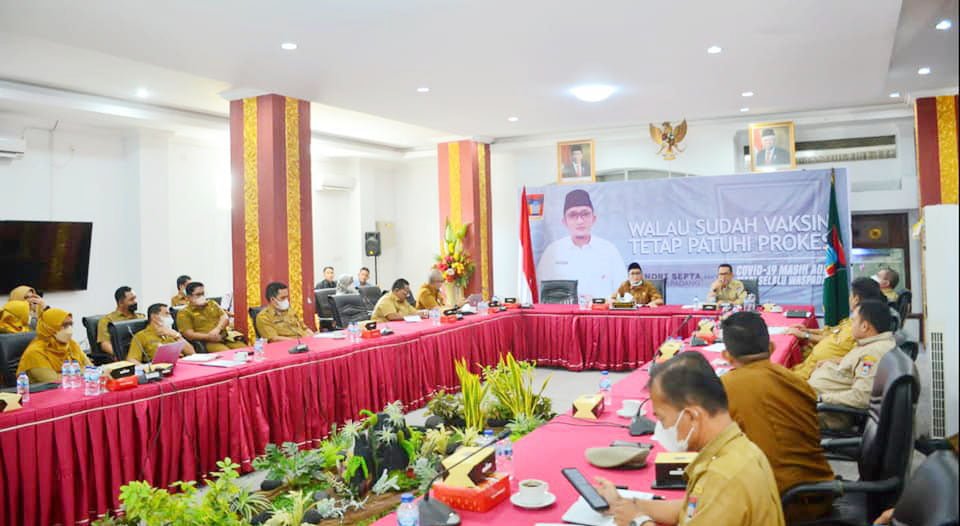 “Alhamdulillah, hari ini kita kembali menggelar rapat lanjutan membahas persiapan Rakernas Apeksi XV. Kita membahas progres persiapan yang telah dilakukan, dimana saat ini untuk kesiapan pelaksanaan rangkaian acara sudah di atas 50 persen,” ungkap Wako.