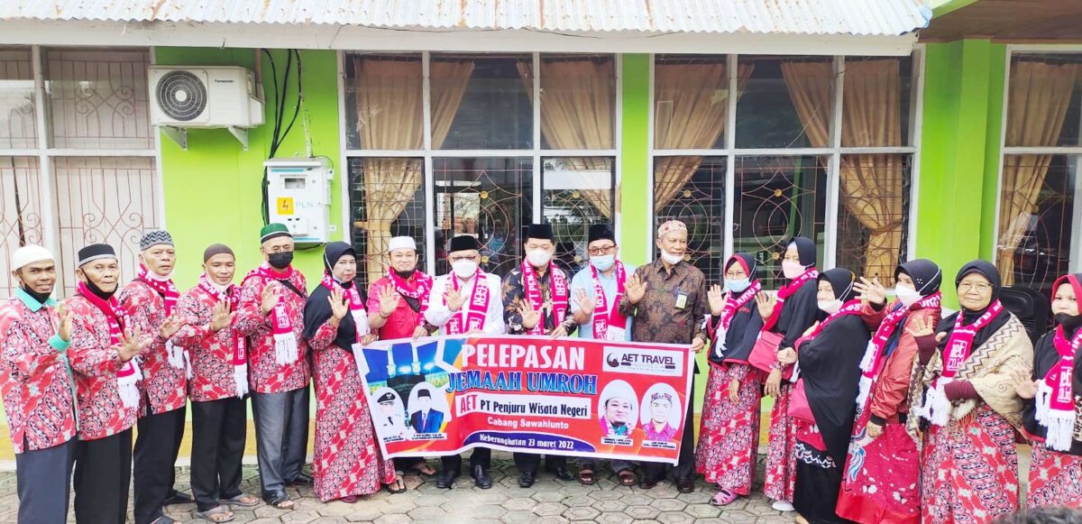 SAWAHLUNTO, METRO–Rombongan jamaah umrah dari Biro Travel Andalas Education Tours (AET) PT Penjuru Wisata Negeri (PT. PWN) dilepas secara resmi Wakil Walikota Sawahlunto Zoirin Sayuti berangkat umroh ke Tanah Suci Mekah, Rabu (23/3).