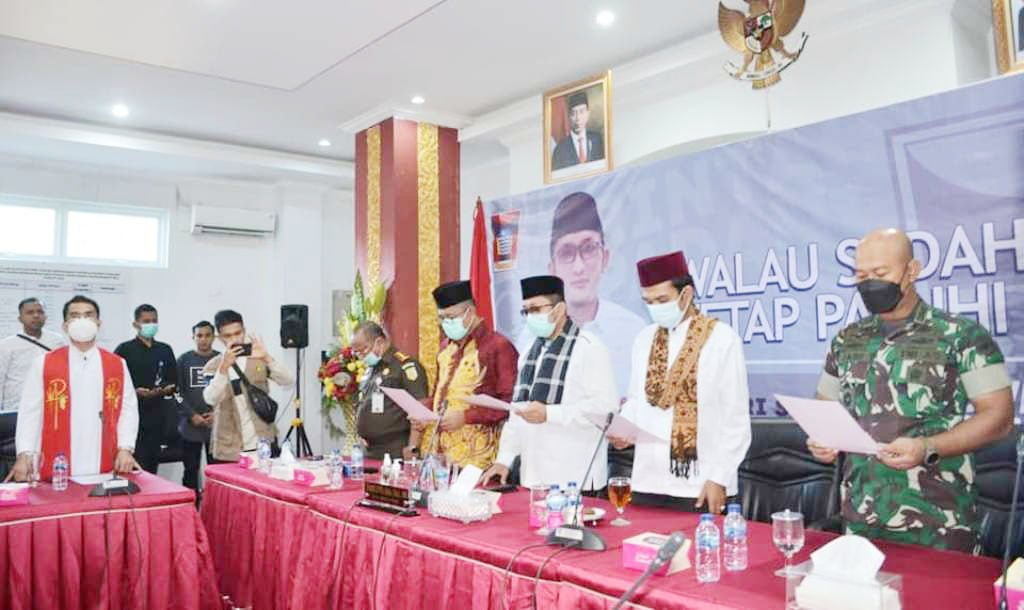 “Terakhir poin yang keenam yaitu berbunyi Memahami Keberagaman Dalam Kebhinekaan dan Selalu Menjaga Serta Memupuk Toleransi Sesama Umat Beragama Demi Ke­utuhan Negara Kesatuan Republik Indonesia. Jadi ini beberapa poin yang tercantum dalam Pernyataan Sikap Bersama. Kita sangat berharap semoga dapat dimaklumi dan dilaksanakan dengan penuh kesadaran dan tanggungjawab oleh seluruh lapisan ma­sya­rakat,” pungkasnya. (rel)