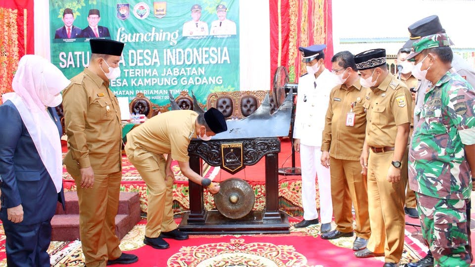 PARIAMAN, METRO–Wali Kota Pariaman H Genius Umar, kemarin, melaunching satu data desa Indonesia di Desa Kampung Gadang Padusunan, Kecamatan Pariaman Ti­mur. Laun­ching tersebut ditandai dengan pemukulan gong oleh Walikota Pariaman yang disaksikan secara langsung oleh Wakil Walikota Pariaman, Mardison Mahyuddin, Ketua DPRD Kota Pariaman, Fitri Nora, Camat Pariaman Timur, Muhammad Arif dan Forkopimda Pariaman maupun secara virtual oleh Kementerian Desa, Pemba­ngunan Daerah Tertinggal, dan Transmigrasi Desa, Bapak Razali, Direktorat Kementerian Kominfo, Dr. Bam­bang Dwianggono.