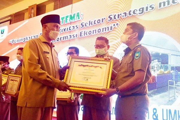 SAWAHLUNTO, METRO–Pemprov Sumbar mengapresiasi Kota Sawahlunto atas keberhasilanya dalam mewujudkan angka kemiskinan paling rendah di Indonesia selama tahun 2021, dengan berikan penghargaan khusus. Penghargaan khusus itu diserahkan Gubernur Sumbar Mahyeldi kepada Wali Kota Sawahlunto Deri Asta, Senin (28/3) di Padang dalam kegiatan Musrenbang RKPD Provinsi Sumbar. Turut menyaksikan penyerahan penghargaan kepada Kota Sawahlunto itu yakni Dirjen Bina Pembangunan Daerah Kemendagri Teguh Setya Budi.