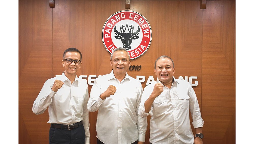 DIREKSI SEMEN PADANG— (Dari kiri-kanan) Indrieffouny Indra (Direktur Operasi), Asri Mukhtar (Direktur Utama), Oktoweri (Direktur Keuangan dan Umum), diabadikan bersama setelah penetapan susunan pengurus baru PT Semen Padang
