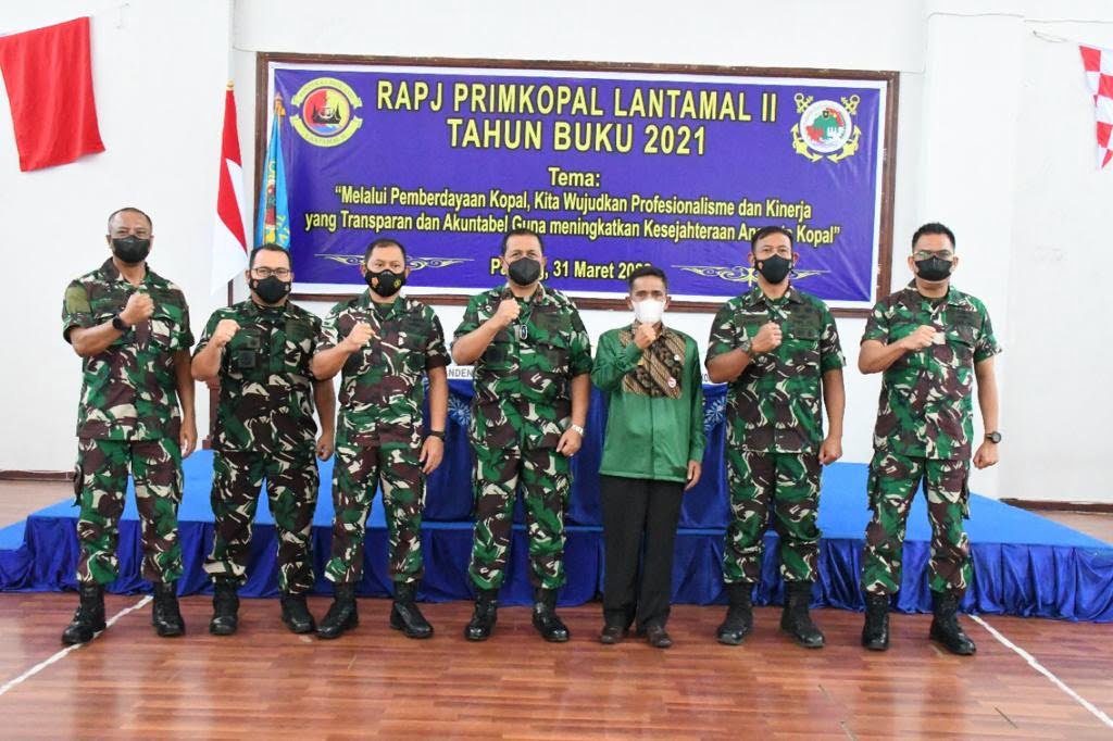 PADANG, METRO–Primer Koperasi TNI AL (Primkopal) Detasemen Markas (Denma) Pang­kalan Utama TNI AL (Lantamal) II, mengadakan Rapat Anggota Pertanggung Jawaban (RAPJ) tahun buku 2021.  Kali ini pengurus Primkopal membuat tema RAPJ “Melalui Pemberdayaan Kopal, Kita Wujudkan Profesionalisme dan Kinerja yang Tran­spa­ran dan Akuntabel Gu­na meningkatkan kesejahteraan anggota Kopal”. RAPJ dilaksanakan di gedung Nanggala Mako Lantamal II Jl. Bukit Peti-Peti, Teluk Bayur, Padang. Kamis, 31 Maret 2022.