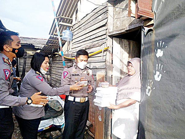 PADANG, METRO–Sebagai bentuk perhatian kepada masyarakat yang kurang mampu, Direktorat Lalu Lintas (Ditlantas) Polda Sumbar membagikan sebanyak tiga ratus paket nasi kotak dan takjil di Pasia Ulak Karang, RT 04 RW 06, Kelurahan Ulak Karang Selatan, Kecamatan Padang Utara.