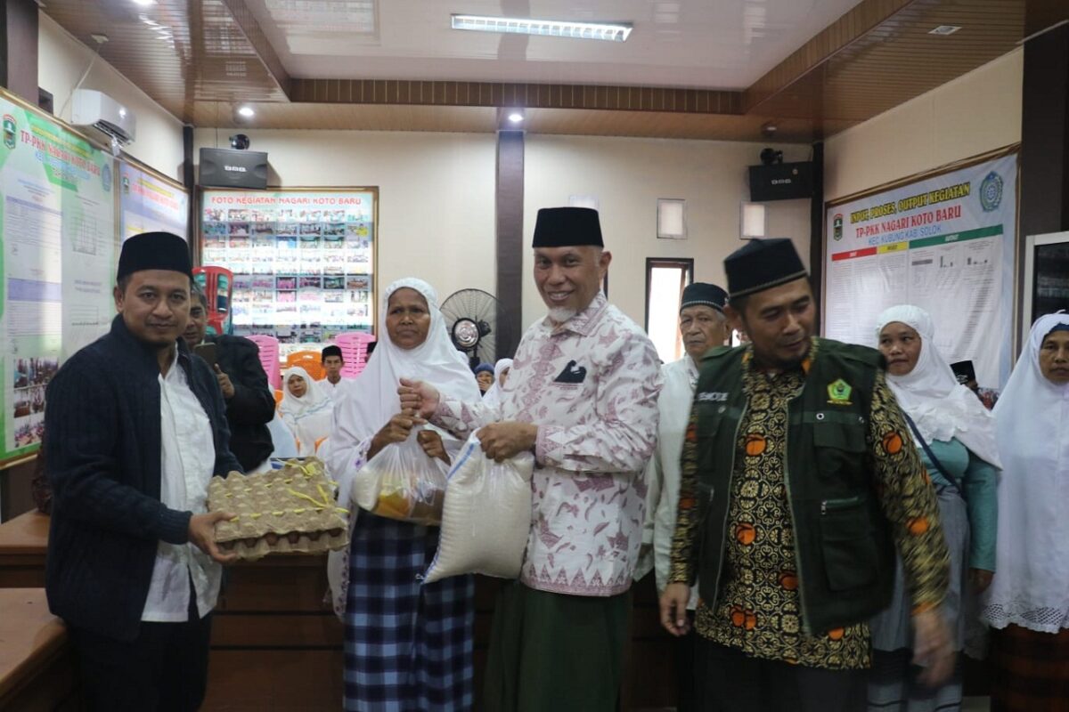SOLOK, METRO–Gubernur Sumatera Barat, Buya Mahyeldi menyerahkan 50 paket Ramadan kepada warga kurang mampu, kerjasama Lembaga Koordinasi Kesejahteraan Sosial (LKKS) Sumbar dan PT. Paragon Technology & Innovation (Wardah Cosmetic).