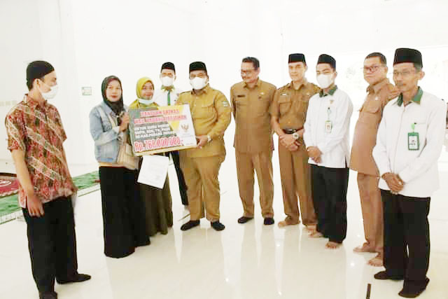 Saat itu Suhatri Bur didampingi Ketua Baznas Rahmat Tk Sulaiman, Kadis Pendidikan Anwar yang menyerahkan bantuan tersebut secara simbolis.