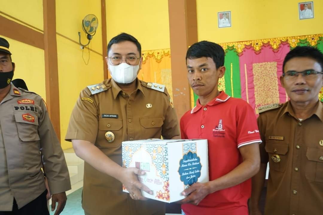 TANAHDATAR, METRO–Wakil Bupati Tanah Datar Richi Aprian, SH MH menyalurkan paket sembako dari Emersia Group bagi masyarakat kurang mampu, Selasa (26/4). Kurang lebih sebanyak 2000 paket sembako akan segera disalurkan kepada masyarakat menjelang hari raya Idul Fitri 1443 H.