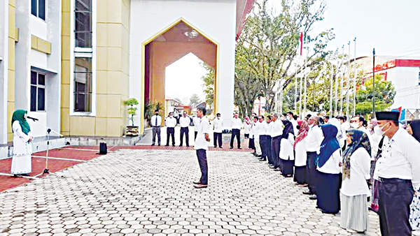 LUBUK LINTAH, METRO–Prof. Dr. Martin kustati, M.Pd ber­tindak sebagai pembina apel pagi yang dilaksanakan di lapangan parkir Rek­torat UIN Imam Bonjol Padang, Senin (9/5) lalu. Hadir pada saat pelaksanaan apel seluruh unsur pimpinan dan pegawai di rektorat kampus setempat.