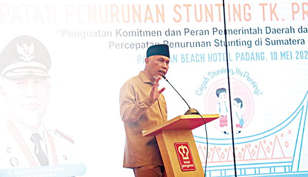 LOLONG, METRO–Untuk penguatan komitmen dan peran pemerintah daerah dalam konvergensi percepatan penurunan angka stunting, Gubernur Sumbar Mahyeldi mengukuhkan Tim Percepatan Penurunan Stunting Tingkat Provinsi Sumbar sekaligus membuka secara resmi konsolidasi tim percepatan, di Pangeran Beach Hotel, Padang, Selasa (10/5).