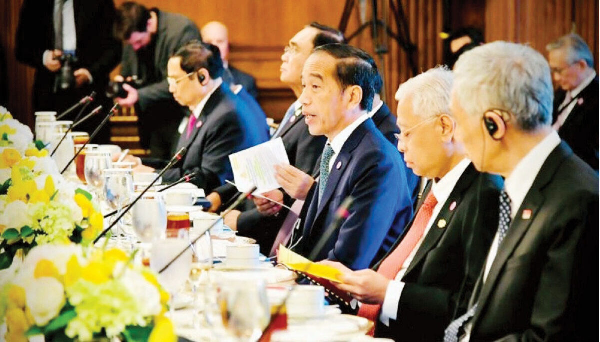 “Sejak 2019, ASEAN telah menyepakati ASEAN Outlook on the Indo-Pacific, memastikan ke­ber­lang­sungan perdamaian dan stabilitas di Indo-Pasifik. Saya mengajak AS untuk terus menjadi bagian dari jangkar perdamaian dan stabilitas di Indo-Pasifik,” ujar Presiden Jokowi. Me­nurut Presiden Jokowi, ASEAN selama lebih dari 5 dekade menikmati per­damaian dan stabilitas.