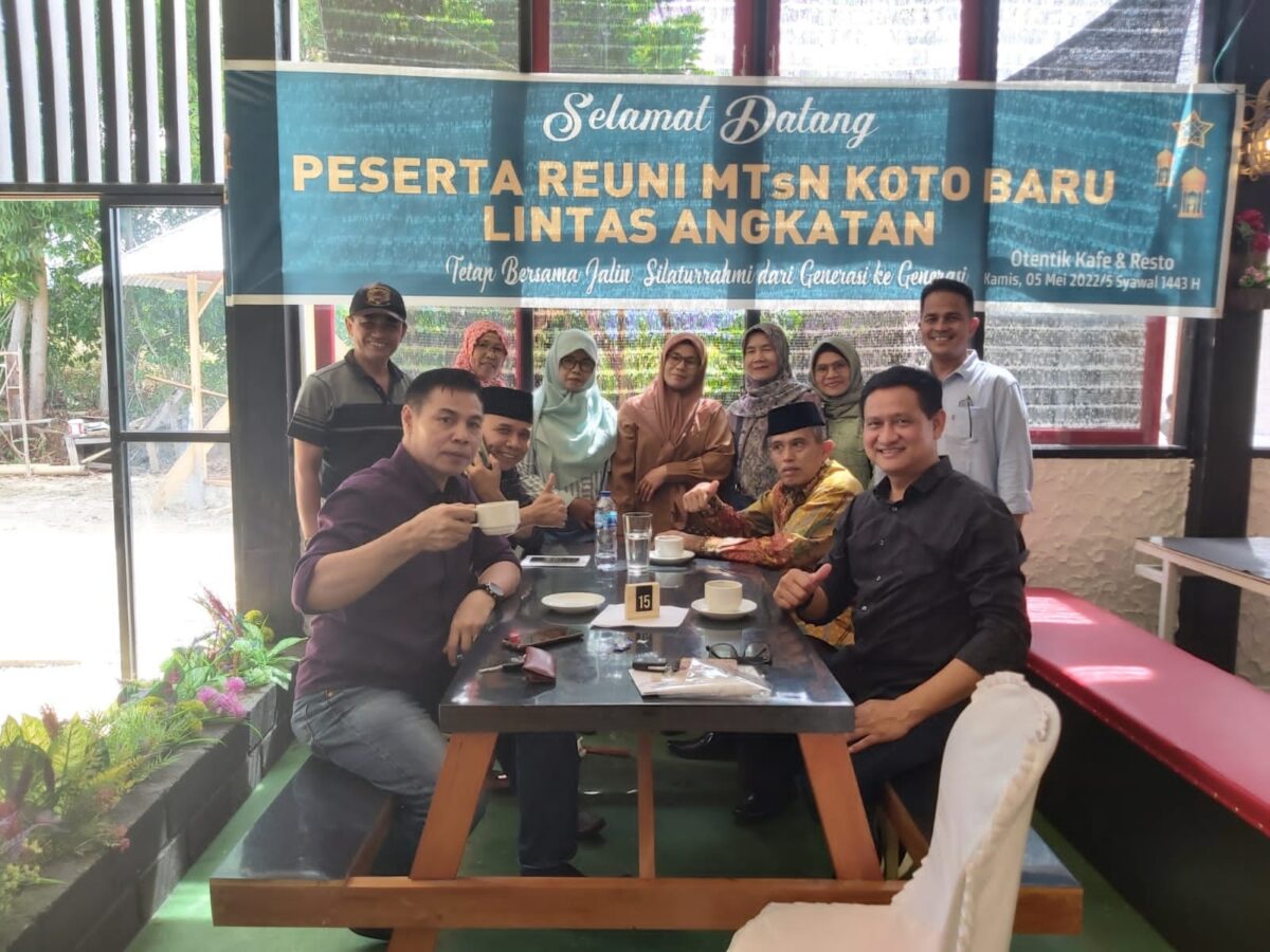 SOLOK, METRO–Potensi alumni sekolah begitu besar peranannya dalam mendorong kemajuan pendidikan dan sekolah. Hal itu pun dirasakan keluarga besar MTsN Koto Baru Solok/MTsN 2 Solok ketika alumni lintas angkatan sekolah itu mengadakan reuni dan halalbihalal. Kegiatan reuni lintas angkatan Alumni MTsN Koto Baru Solok/MTsN 2 Solok kali ini bisa dibilang untuk pertama kalinya dalam satu dekade belakangan ini. Pertemuan antar kawan seperjuangan sewaktu menuntut ilmu itu, digelar di Otentik Cafe dan Resto yang terletak di kawasan Jalan Lingkar Utara, Kota Solok.