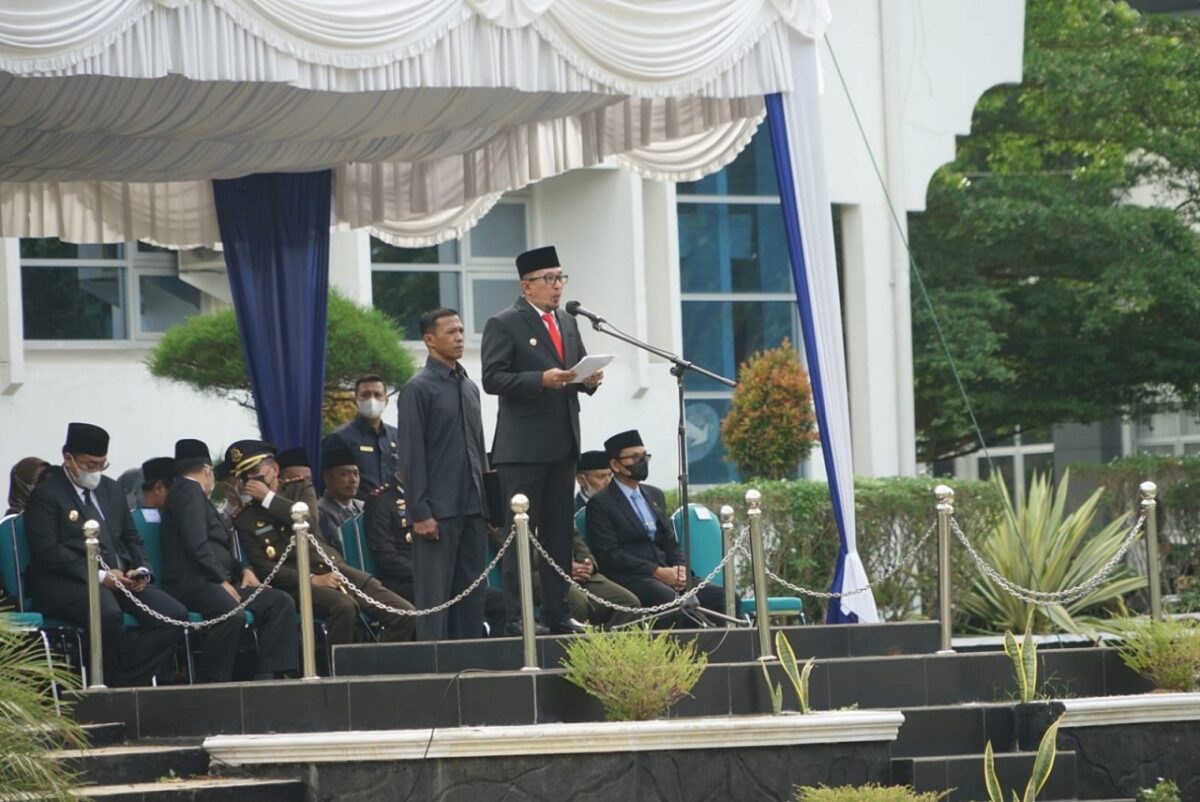 Bupati Tanah Datar Eka Putra bertindak sebagai Inspektur Upacara diikuti Wakil Bupati Richi Aprian, Forkopimda, Rektor IAIN Batusangkar, pimpinan BUMN/BUMD, pimpinan OPD dan peserta upacara dari TNI Polri, ASN dan Siswa.