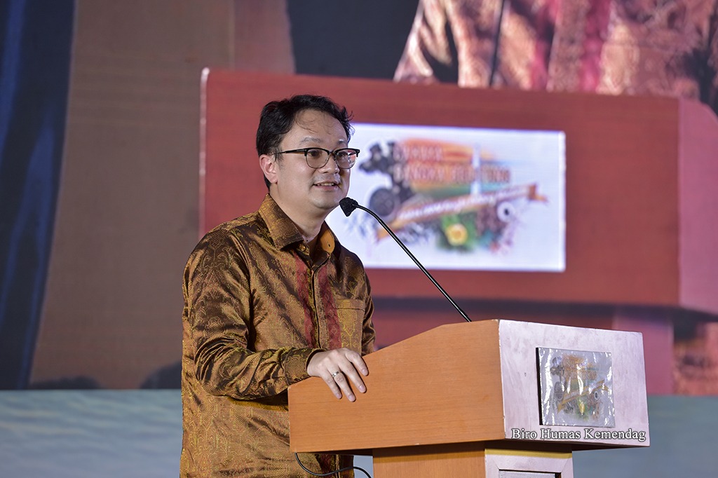 Wakil Menteri Perdagangan Jerry Sambuaga saat meluncurkan Gerakan Nasional Bangga Buatan Indonesia (BBI) #CahayaBangkaBelitung yang digelar secara hibrida.