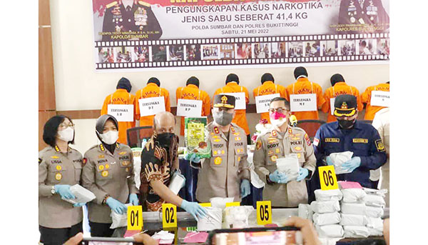 “Operasi penangkapan ini dimulai sejak tanggal 14 Mei 2021 hingga saat sekarang. Pengungkapan penyalahgunaan narkotika kali ini merupakan capaian terbesar sejak Polres Bukittinggi dan Polda Sumbar berdiri, sebab sebelumnya hanya 7 kilogram di Payakumbuh,” ujar Irjen Pol Teddy.