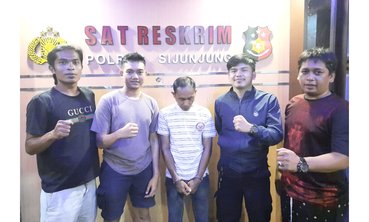 Sebulan lebih dilakukan pengejaran dan pencarian, keberadaan pelaku AA pun terendus Polisi yang ternyata bersembunyi di sebuah pondok kawasan perkebunan sawit yang sangat jauh dari pemukiman penduduk. Pelaku pun akhirnya bisa ditangkap jajaran Satreskrim Polres Sijunjung untuk mempertanggungjawabkan perbuatannya.