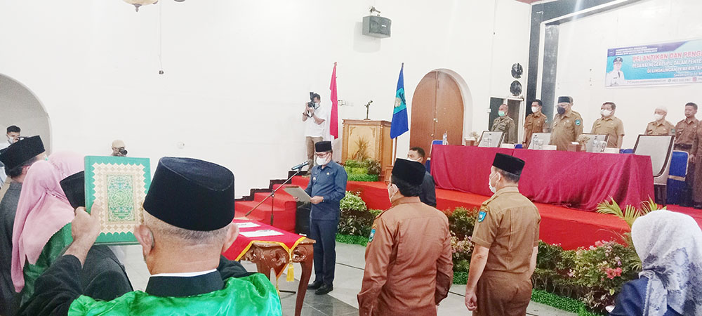 Penandatanganan oleh Walikota Deri Asta untuk perwakilan pelantikan sumpah Jabatan. Pengambilan sumpah jabatan fungsional. Situasi pelaksanaan pengambilan sumpah jabatan fungsional di linkungan ASN Kota Sawahlunto.