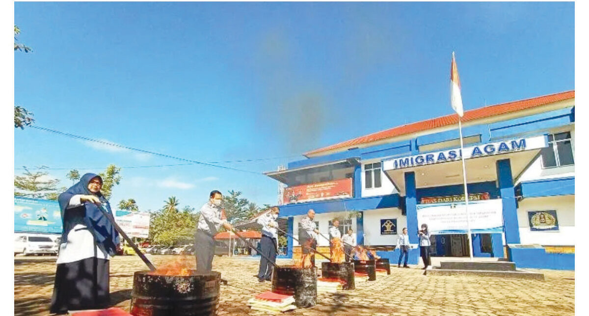AGAM, METRO–Kantor Imigrasi Kelas II Non TPI Agam, memusnahkan sebanyak 33.007 lembar dokumen keimigrasian yang dinyatakan sudah tidak terpakai dan melewati masa retensi, namun dokumen tersebut telah terdaftar sebelumnya. Pemusnahan dilakukan bersama pihak Kementerian Hukum dan Hak Azasi Manusia (Kemenkumham) Kantor Wilayah Sumatera Barat di halaman Kantor Imigrasi Agam, Koto Hilalang, Selasa (7/6).