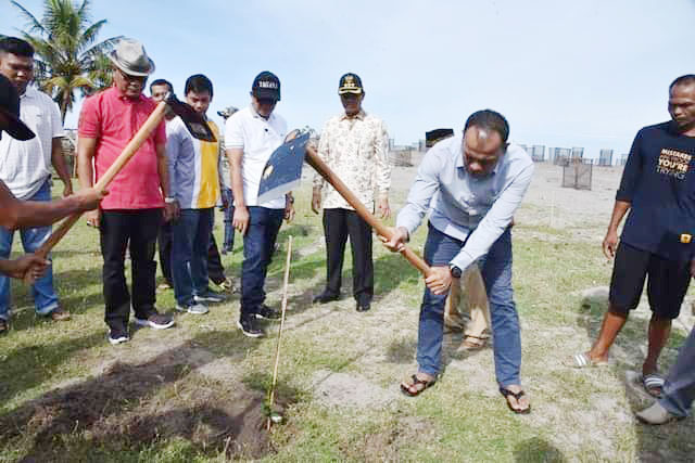 “Bantuan vegetasi pantai ini, semuanya menggunakan dana APBN KKP RI, merupakan hasil audiensi kita beberapa waktu lalu ke KKP,  selain vegetasi pantai ini yang dilengkapi dengan jaring pelindung, agar tidak dimakan ternak dan juga ditambah de­ngan mesin dan sumur untuk airnya nanti,” ungkapnya.