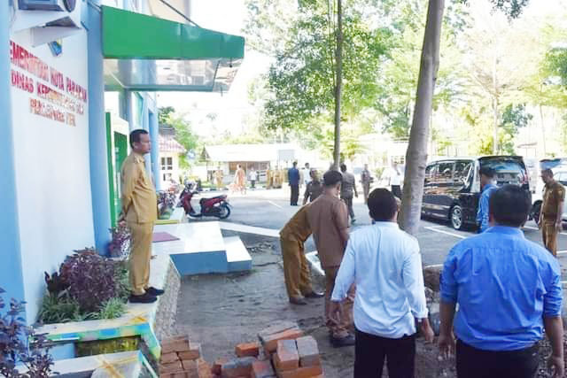 Selain itu, Genius juga mengajak para Kepala Dinas, dan pejabat eselon III dan Staf yang berkantor di Kantor Bersama ini, untuk gotong royong menata pepohonan dan memperlebar median jalan untuk memudahkan akses masyarakat mengurus pelayanan di kantor bersama ini.