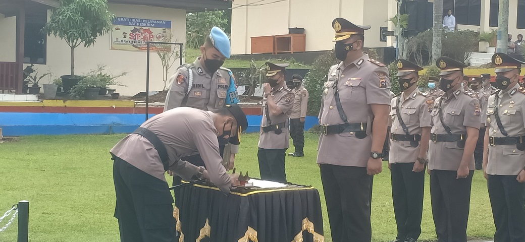 TANAHDATAR, METRO–Kapolres Tanah Datar AKBP Ruly Indra Wijayanto , S.I.K , M.Si memimpin upacara serah terima jabatan yang dilaksanakan di lapangan apel Polres Tanah Datar dengan dihadiri oleh para pejabat utama serta para Kapolsek sejajaran Polres Tanah Datar, Jum’at pagi.