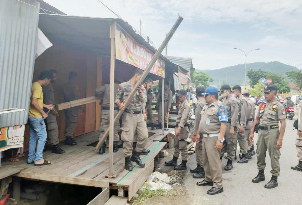 Berulang Kali Ditegur Tetap Acuh, Lapak PKL Jalan Aru Diangkut