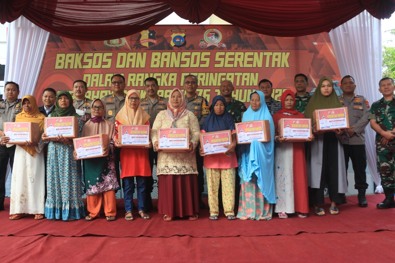 Kepala Biro Operasi (Karoops) Polda Sumbar Kombes Pol Djajuli saat membacakan amanat Kapolda Sumbar mengatakan, kegiatan baksos ini menunjukkan eksistensi Polri di usia ke 76, dan Polri turut dalam pemulihan ekonomi nasional juga dekat dengan masyarakat dalam upaya mewujudkan pelayanan polri yang PRESISI.