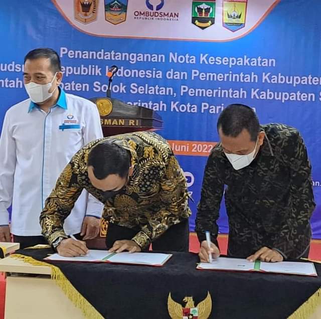 PARIAMAN, METRO–Wali Kota Pariaman H Genius Umar menyatakan dalam meningkatkan kualitas pelayanan publik dalam daerahnya sekarang pemko melakukan kerja sama dengan ombudsman RI. “Sekarang kita melakukan Memorandum of Understanding (MoU) atau Nota Kesepakatan, antara Ketua Ombudsman RI, Mokhammad Najih,” kata Walikota Pariaman Genius Umar, kemarin.