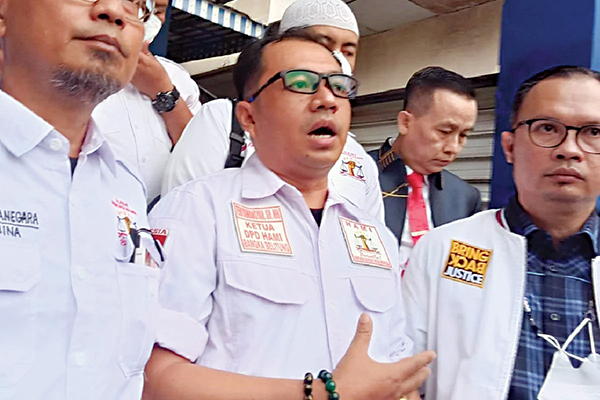 SPKT— Ketua DPD Himpunan Advokat Muda Indonesia HAMI Bangka Belitung Feriyawansyah di depan gedung Sentra Pelayanan Kepolisian Terpadu SPKT Polda Metro Jaya.