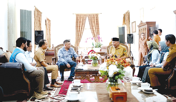 WAHIDIN, METRO–PLN Unit Induk Wilayah (UIW) Sumbar mendatangi Istana Gubernur Sumbar, Selasa pagi (5/7). General Manager Toni Wahyu Wibowo dan jajaran hadir langsung menghadap Gubernur dan menyampaikan permohonan maaf atas gangguan listrik di Saluran Udara Tegangan Tinggi (SUTT) Lahat-Bukit Asam pada Senin (4/7) sekitar pukul 18.31 WIB.