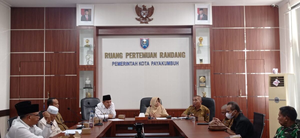 POLIKO, METRO–Pemerintah Kota Payakumbuh memutuskan pelaksanaan Shalat Idul Adha 1443 H dilaksanakan di Halaman Kantor Wali Kota Payakumbuh pada Minggu, 10 Juli 2022. Hal tersebut disampaikan dalam rapat persiapan yang digelar di Aula Randang Kantor Wali Kota Payakumbuh, Selasa (5/7). Rapat persiapan Idul Adha tersebut dipimpin oleh Wali Kota Payakumbuh yang dalam hal ini diwakili oleh Staf Ahli Herlina serta didampingi Kabag Kesra Irwan Suwandi, Kepala Dinas Komunikasi dan Informatika Junaidi dan dihadiri oleh Kepala Kantor Kemenag Kota Payakumbuh Ramza Husmen, Ketua MUI Kota Payakumbuh Perwakilan dari PHBI, Perwakilan Forkopimda dan Kepala OPD terkait.