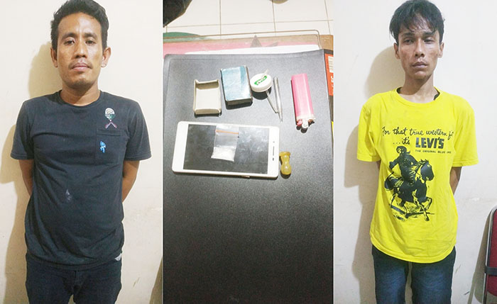 Dijelaskan oleh AKP Suyanto, saat penggeledahan terhadap kedua pelaku ditemukan barang bukti satu paket sedang sabu terbungkus plastik bening, satu buah pipet, satu buah pirek kaca, satu buah kotak korek api kayu, satu buah Hp Oppo warna putih.