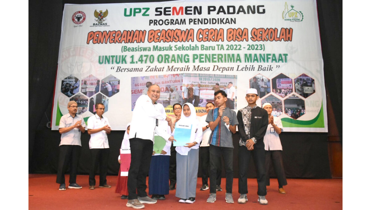 PADANG, METRO–UPZ Baznas PT Semen Padang menyerahkan beasiswa ceria bisa sekolah senilai Rp1,4 Miliar kepada 1470 penerima, Selasa, 19 Juli 2022. Acara seremonial penyerahan dilakukan di lantai satu GSG PT Semen Padang yang dihadiri oleh orang tua siswa penerima dari siswa SD, SMP, SMA, Perguruan Tinggi dalam negeri dan perguruan tinggi luar negeri.