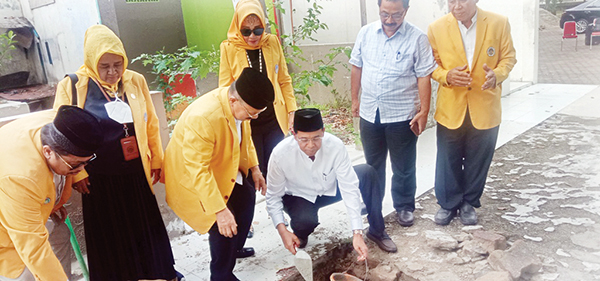 AIA TAWAR, METRO–Rektor Universitas Negeri Padang (UNP) Ganefri dan Ketua Ikatan Alumni Universitas Negeri (Iluni) Padang Ali Mukhni melakukan peletakan batu pertama dimulainya pembangunan Graha Iluni UNP di kawasan kampus, Jumat ( 22/7) lalu.