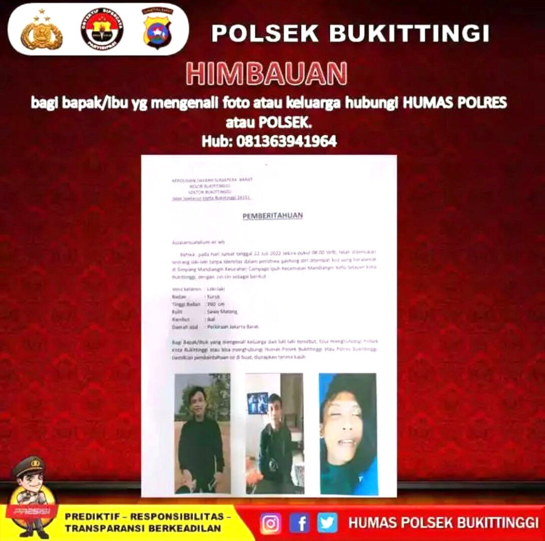 Bahkan, pihak Kepolisian pun kesulitan untuk mencari keberadaan keluarga korban. Sehingga, Polres Bukittinggi menyebarkan informasi itu melalui media sosial dengan mengumumkan dan menghimbau masyarakat yang merasa kehilangan keluarga untuk menghubungi Polres ataupun Polsek Bukittinggi.
