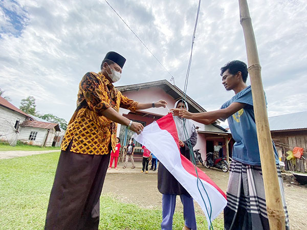 LIMAPULUH KOTA, METRO–Bupati Kabupaten Limapuluh Kota periode 2016-2021, Irfendi Arbi bagi-bagi bendera ke puluhan warga yang ada di Ateh Bonai Jorong Piladang, Nagari Koto Tangah Batu Hampa, Kecamatan Akabiluru, Kabupaten Limapuluh Kota, pada Rabu (3/8). Aksi bagi-bagi bendera ukuran sedang dan kecil itu langsung dilakukan Irfendi Arbi kerumah warga, tidak itu saja, ia juga membagikan makanan ringan kepada puluhan anak-anak yang menerima bendera ukuran kecil itu.