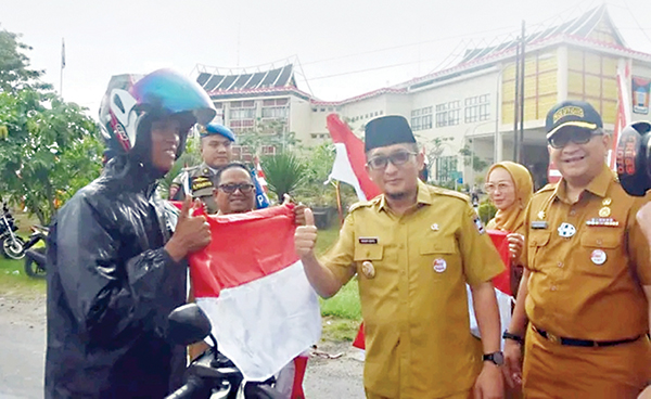“Alhamdulillah, hari ini kita mencanangkan gerakan pembagian 10 juta ben­dera Merah Putih da­lam rangka memperingati HUT Kemerdekaan RI yang ke-77. Kita sangat menyambut baik, karena hal ini berbarengan juga dengan momentum peringatan HUT Kota Padang ke-353 yang jatuh pada 7 Agustus,” ungkap Sekretaris Daerah (Sekda) Kota Padang Andree Algamar sewaktu mewakili Wali Ko­ta Padang saat men­ca­nang­kan sekaligus me­mimpin pembagian bendera Merah Putih kepada warga Kota Padang, pengguna jalan yang melintas di depan Kantor Balai Kota Padang, Aie Pacah, Selasa (2/8).